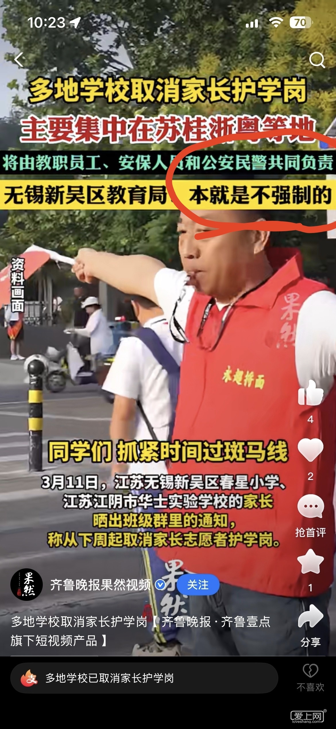 我們孩子小學(xué)某學(xué)期末考試班級(jí)第一,就因?yàn)槲也粎⑴c家長(zhǎng)的護(hù)學(xué)崗活動(dòng),直接沒(méi)有評(píng)選三好學(xué)生的資格